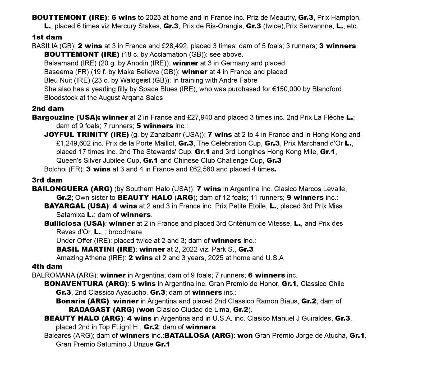 ‘I am consigning some very nice foals by Bouttemont at the upcoming foal sales. They are strong, sprinting types with a great walk and I would expect them to develop into very smart yearlings in 2026.’