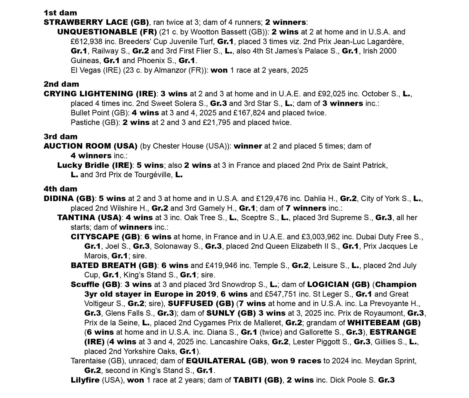 Unquestionable is supported by a family of the highest global class as a  member of the famous Best In Show family via the Didina branch responsible  for proven Gr.1 sires Bated Breath and Cityscape.